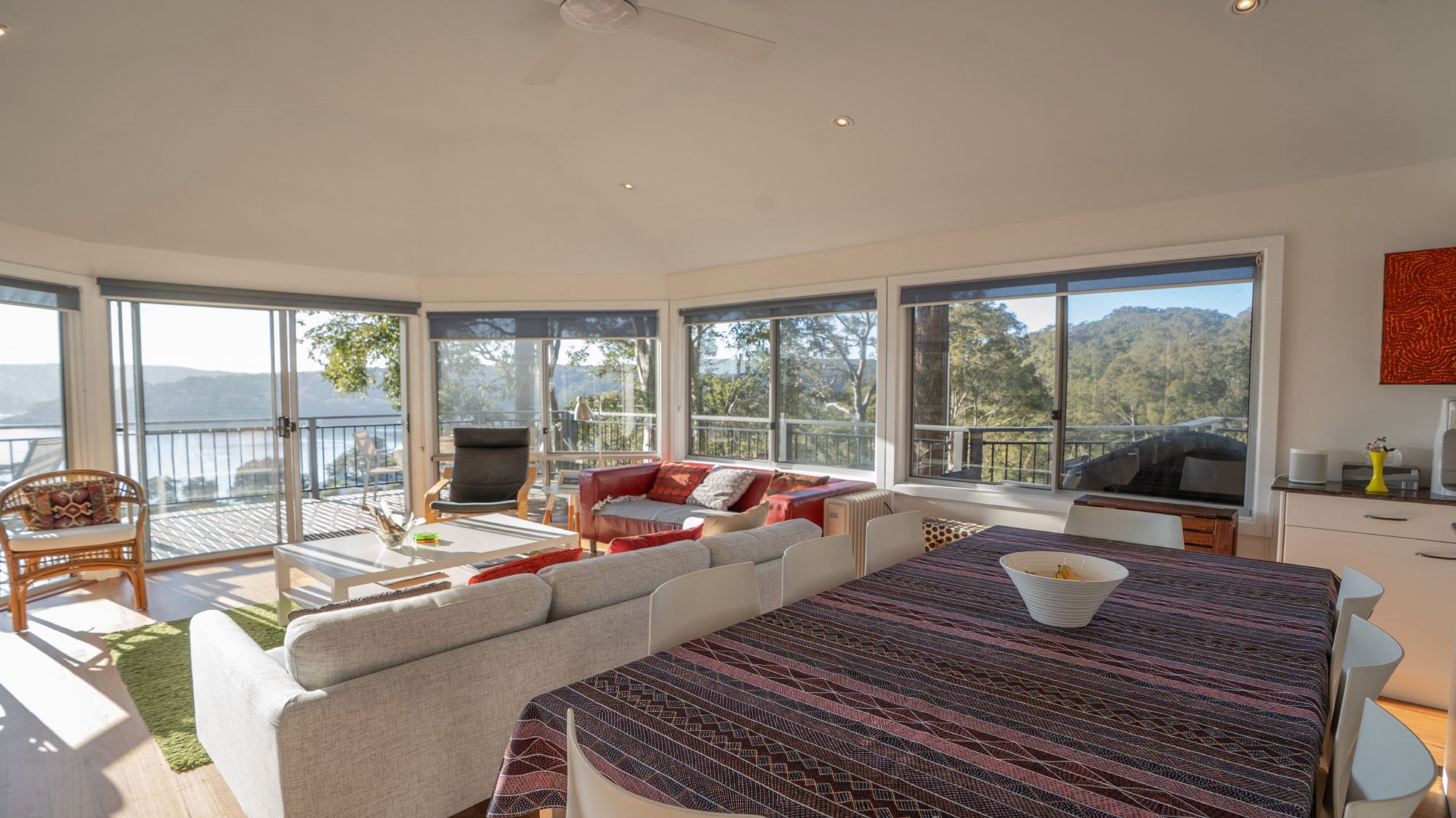 Set high in the trees near Bouddi National Park with stunning uninterrupted views over Brisbane Water. This comfortable house is perfect for a family or couples' getaway with a fully equipped kitchen, open plan living and dining and a large deck with amazing water views.