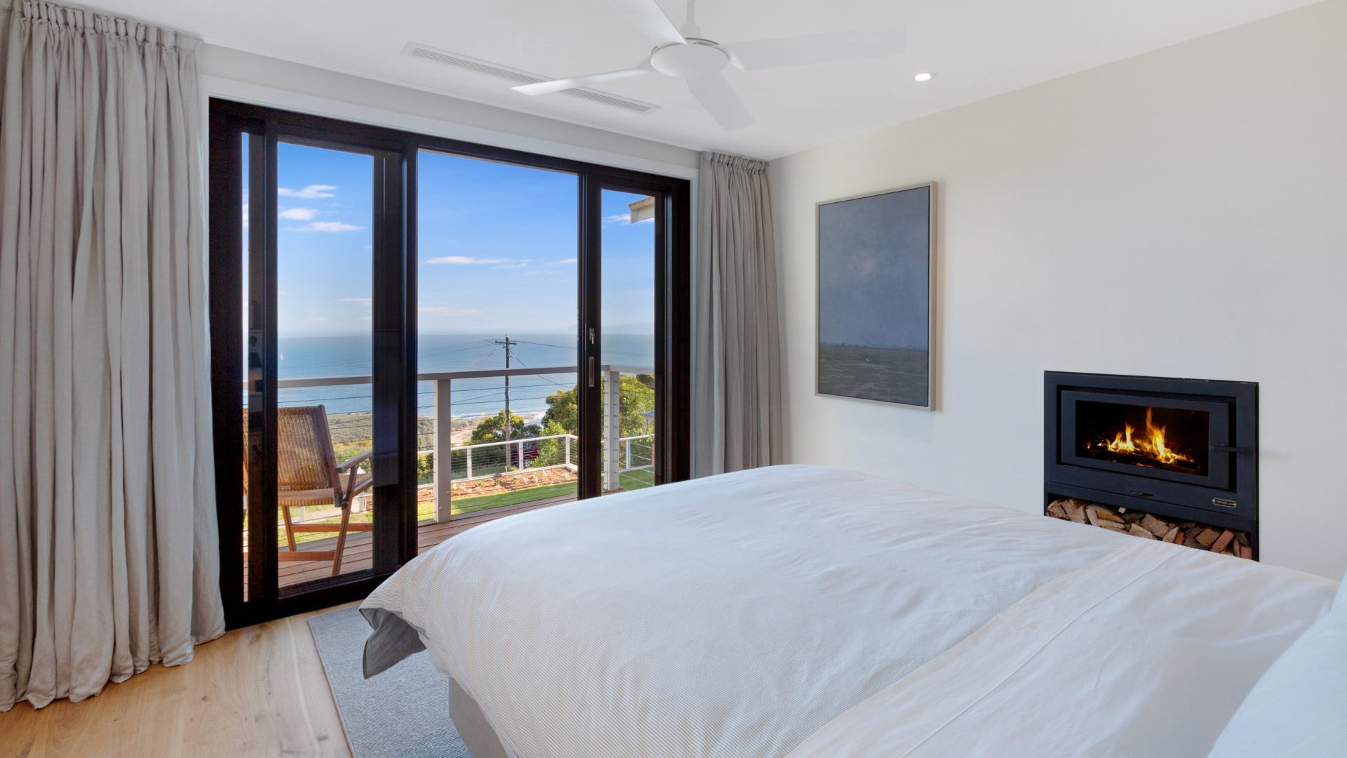 - Open living area with Smart TV, combustion fireplace and sweeping ocean views