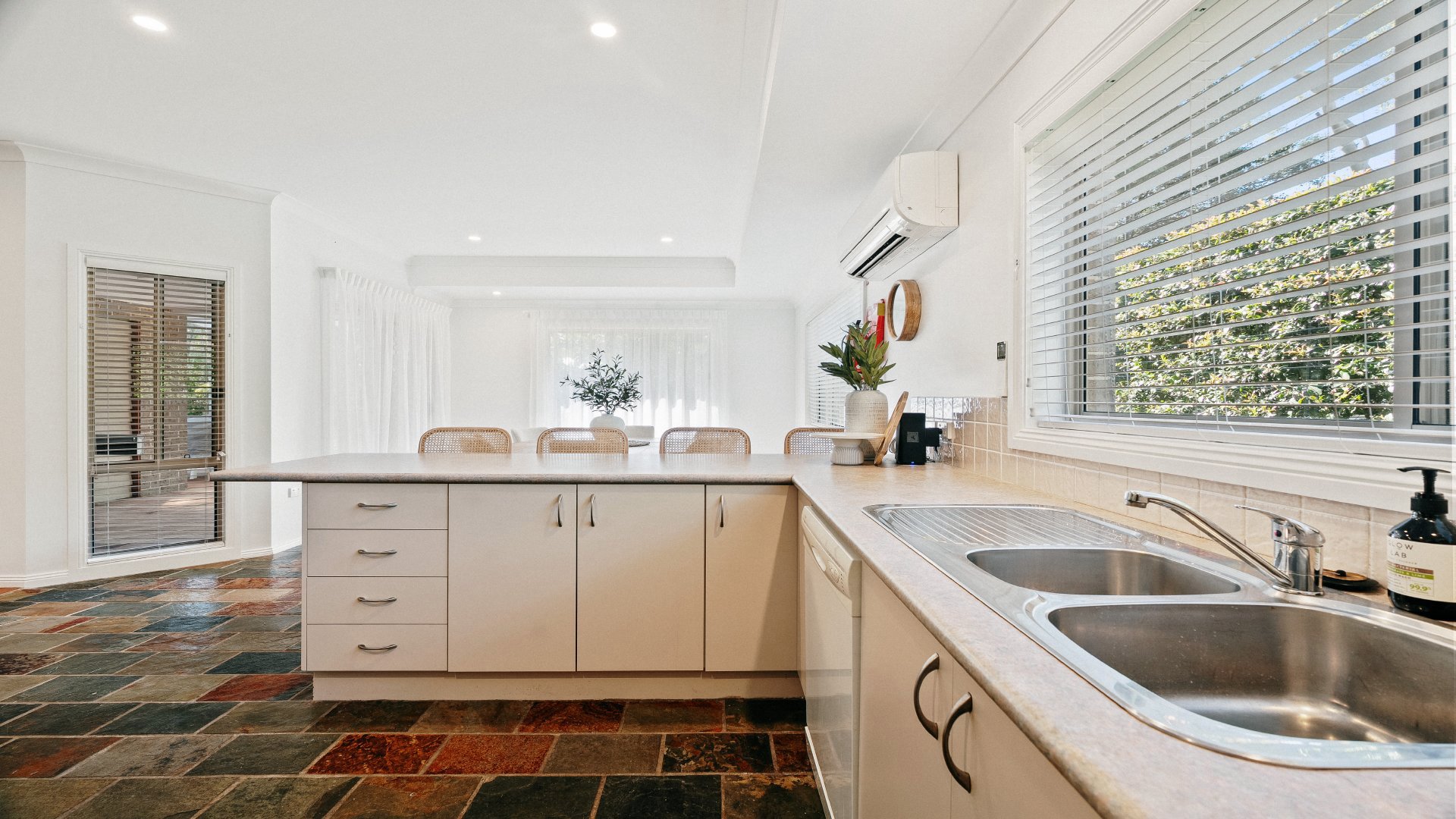 - Open-plan kitchen, dining & living spaces with split system air conditioning